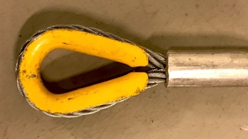 Wire Rope Sling made of 10mm 1960N/mm2 tensile wire rope. Complies with the requirements of the Machinery Directive 2006/42/EC, Annex II 1.A, EN12385 and EN13414-1.